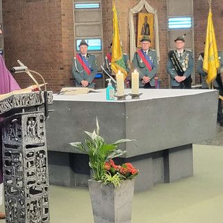 Die Fahnenabordnungen "rahmten" das Geschehen ein, Linda Marischen (Jugendschießleiterin Rechterfeld) verlas die Lesung, Rechterfelder Schülerschützen die Fürbitten. Insbesondere durch die musikalische Begleitung von Johannes Kühling und "seiner zwei Sängerinnen" war es eine sehr schöne Messe.